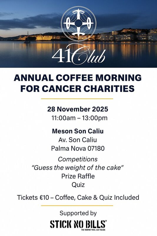 ☕ Join the 41 Club’s fundraising coffee morning supporting cancer charities across Mallorca — enjoy good company, coffee, and a great cause! 💗